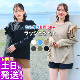 【半額クーポン対象】【人気インスタグラマーとコラボ!】ラッシュガード セットアイテム水着 フリル二の腕カバー メール便 紫外線対策 2025秋冬 【ase207-452】【即納:1-5営業日】【送料無料】メ込2