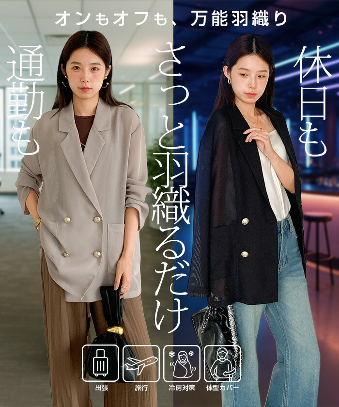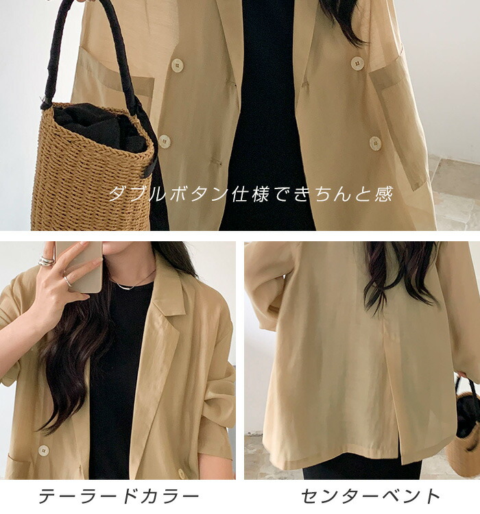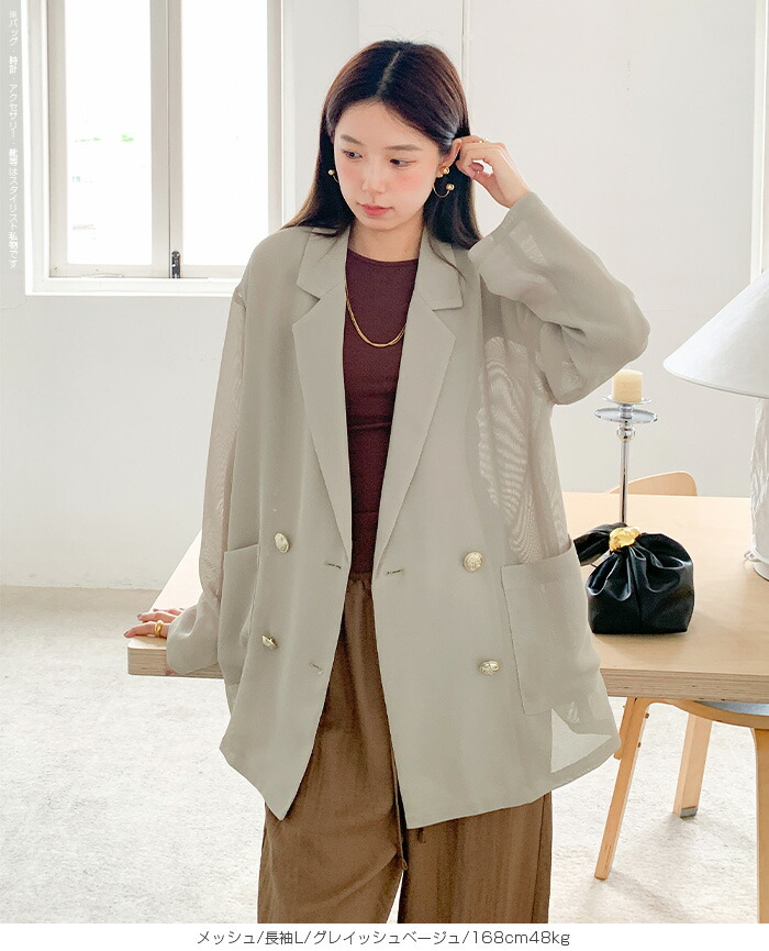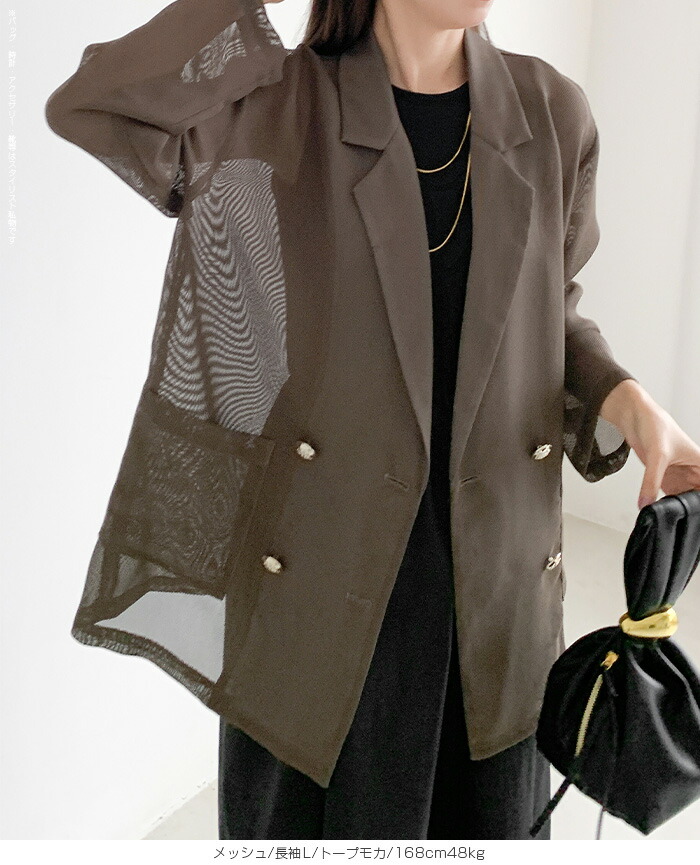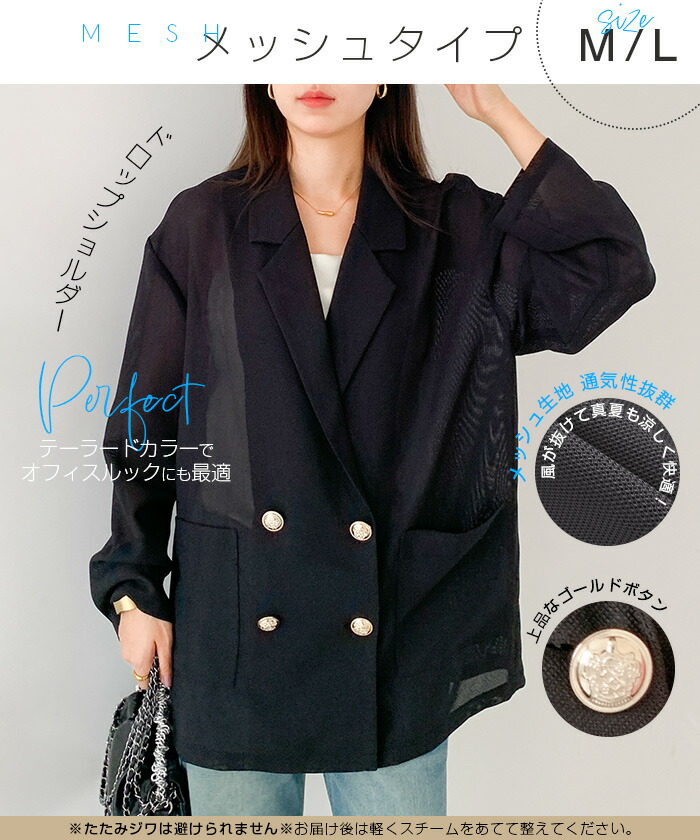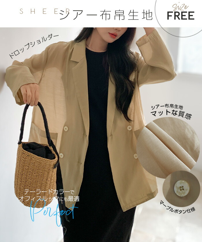 【期間限定:5,830円→2,990円!】 ジャケット レディース 夏 薄手 テーラード ビッグサイズ シアー メッシュ 透け感 大きいサイズ 羽織り 30代 通勤 オフィスカジュアル 涼しい 冷房対策 旅行 出張 ダブルボタン ゆったり 【シアージャケット】