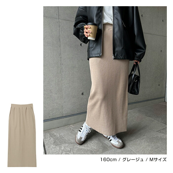 セルフカットリブ タイトスカート レディース ナロースカート ボトム タイト スカート ロングスカート ウエストゴム 体型カバー 楽ちん ゆったり ストレッチ Iライン 美ライン ポケット スリット カットソー きれいめ カジュアル セットアップ M L 春夏 秋冬 春 夏 秋 冬