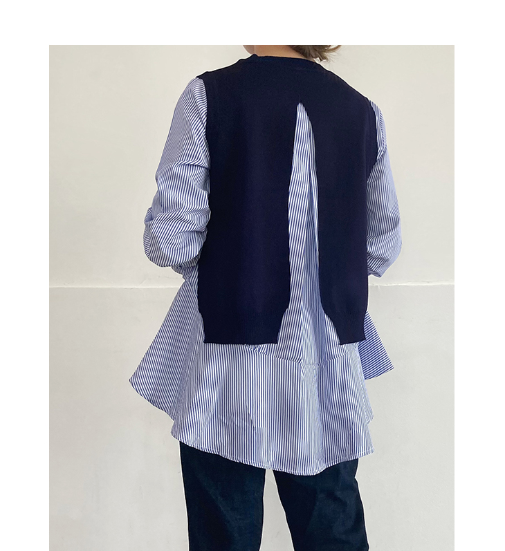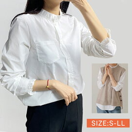 【12/16 50%OFF!限定クーポンで】シャツセット 重ね着 ブラウス ニットベスト ベスト セット フリルブラウス ストライプ カットソー レディース 長袖 トップス 2点セット レイヤード バックオープン プルオーバー ワンピスター