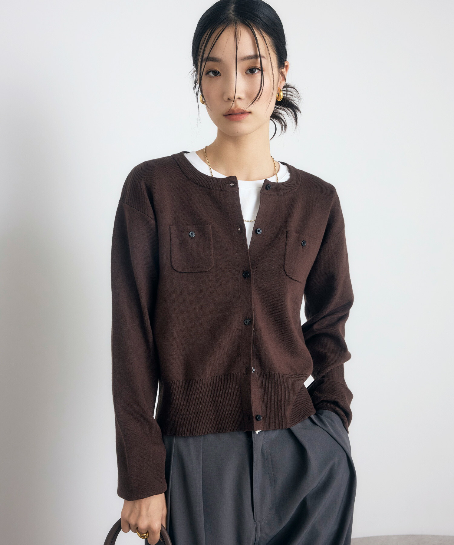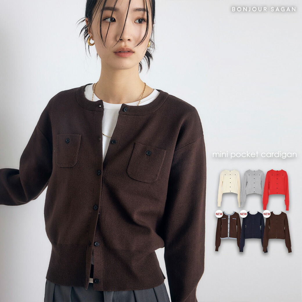 【BROWN入荷リクエスト受付中】ミニポケット カーディガン レディース トップス 羽織り 秋 カジュアル オフィス ボンジュールサガン ミニポケットニットカーディガン 【予約/12月下旬or1月中旬】