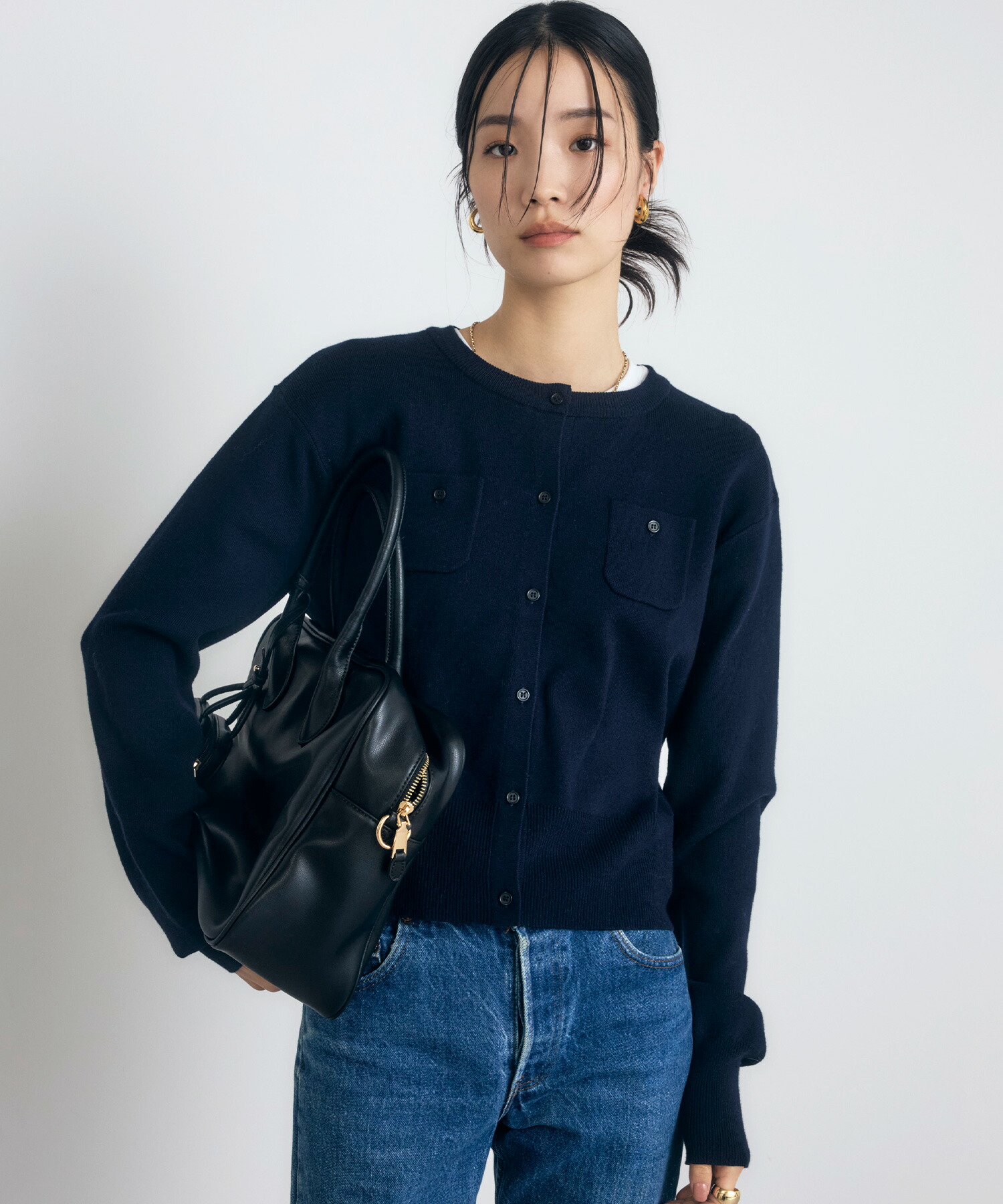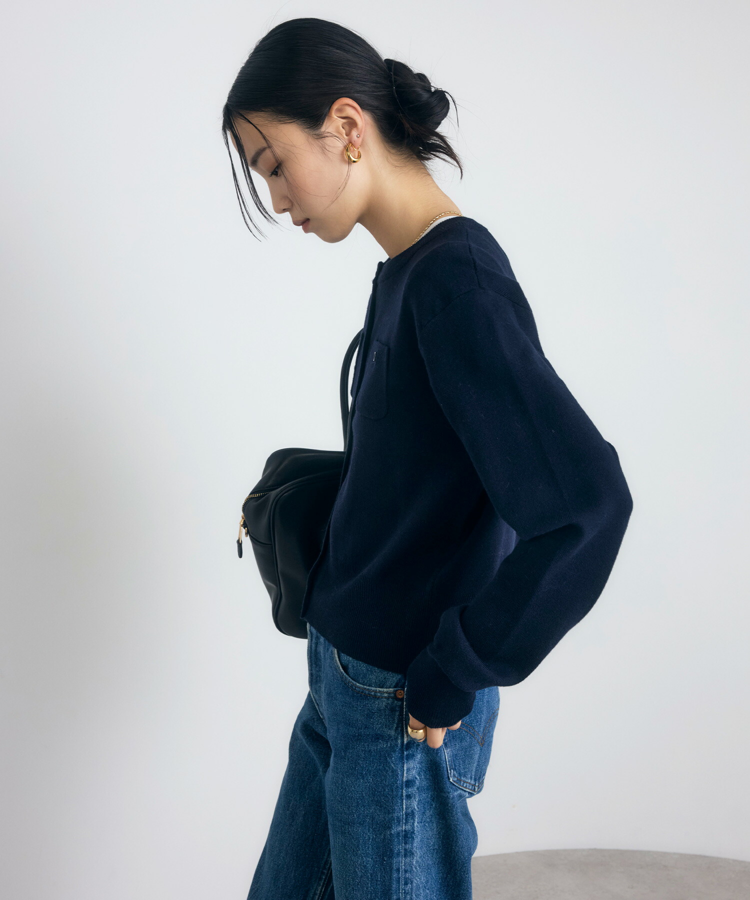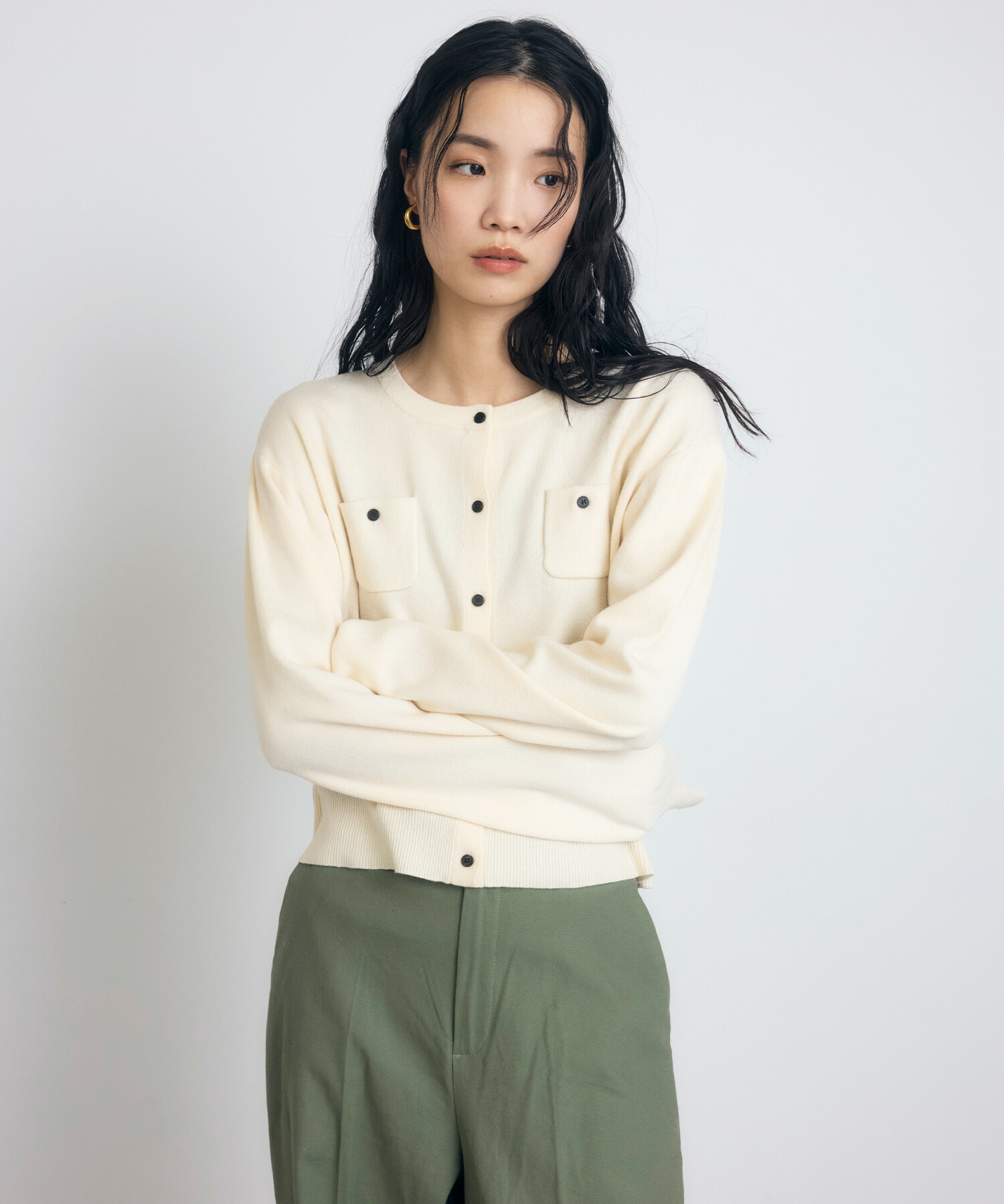 カジュアルな着心地なのに品よく見える、大人の抜け感を演出するヘンリーネックニット。 ボタンを少し開けて着ると、抜け感もプラスされすっきりした着こなしも◎