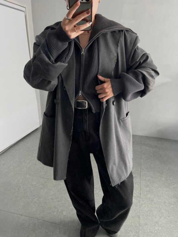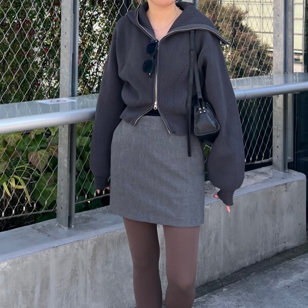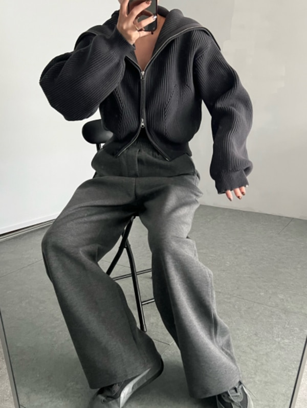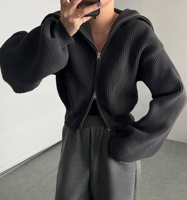ダブルジップビッグカラーカーデニット
