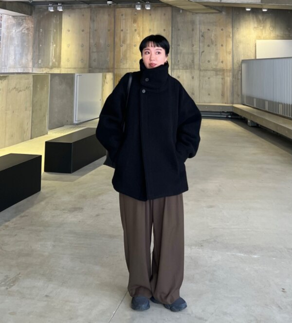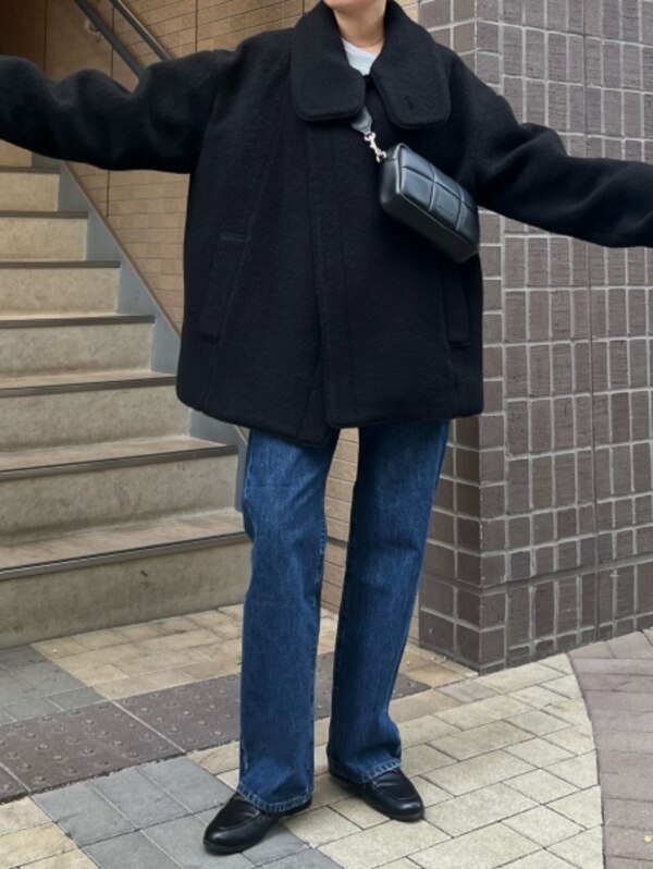 私は162cmで38サイズ購入してます◎ やばい、、、本当にかっわいすぎる!!!! そして思ってた以上に軽くてびっくり。 襟元折っても立たせても可愛くてやばいです...🫠🖤 今年の冬たっくさん着よ〜〜♡
