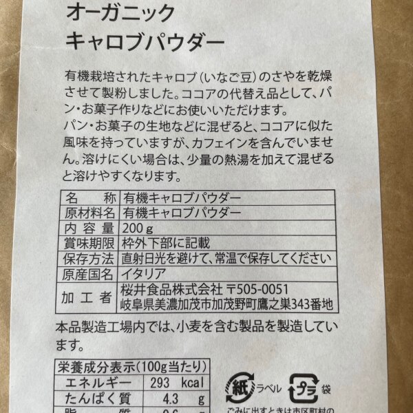 無添加キャロブパウダー200g ★2個までネコポス便可★有機JAS(無農薬・無添加)★イタリア産★オーサワジャパン