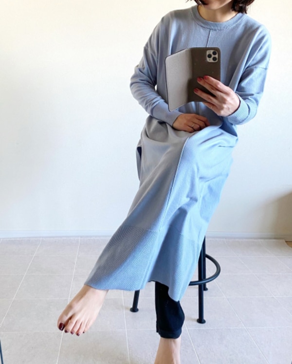 温かくなったら着たいきれい色ニットワンピ♪スカートと重ねてウエストベルトで締めたらお出かけ仕様✨もちろんレギンス合わせでおうち着としても👌