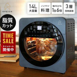 【楽天週間1位★20%OFFクーポン】Epeios ノンフライオーブン 14L大容量|エアフライヤー機能搭載|油なし揚げ物・ロティサリー・回転調理・フードドライヤー・オーブントースター・多機能ノンフライヤー|3段トレイ・自動メニュー・熱風循環調理