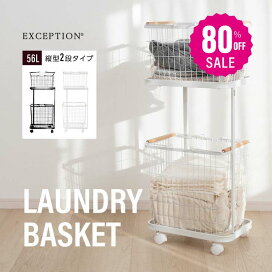 【2点購入で40%OFFクーポン対象】ランドリーバスケット 大容量 キャスター付き 2段タイプ 縦型 ホワイト 収納用品 洗面所 新生活 56L 2024新作 省スペース 収納 洗濯物 持ち運び 移動も楽々 かご (T)
