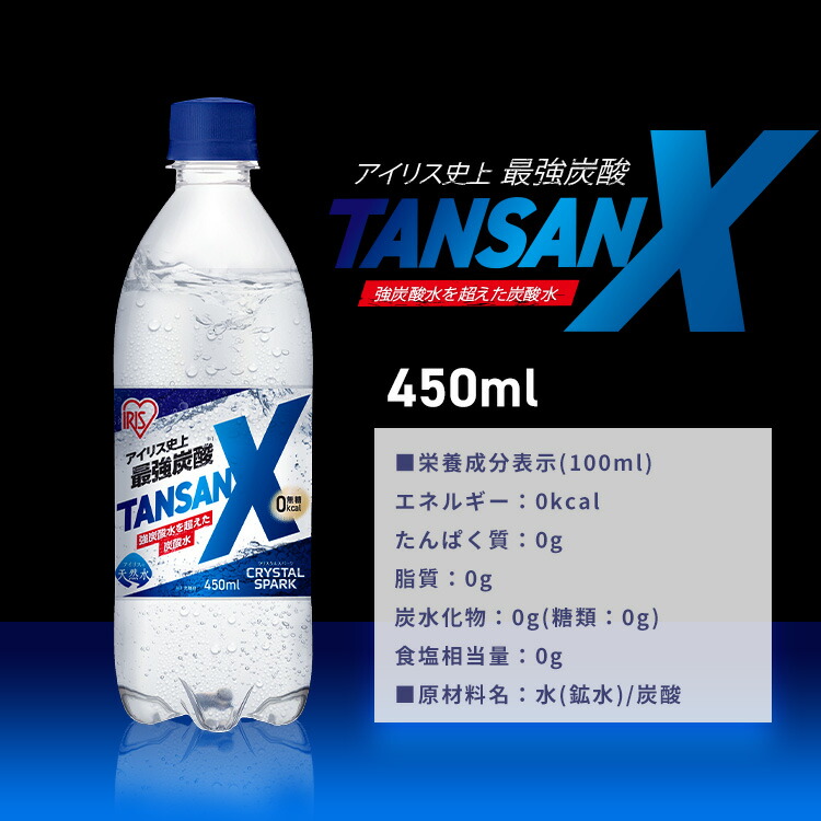 【24本】強炭酸水 450ml 無糖 ゼロカロリー 軟水 国産 炭酸水 最強炭酸 強炭酸 スパークリングウォーター ソーダ水 炭酸 ソーダ 0kcal プレーン 割り材 アイリスオーヤマ TANSAN X 送料無料 箱買い お酒 ハイボール
