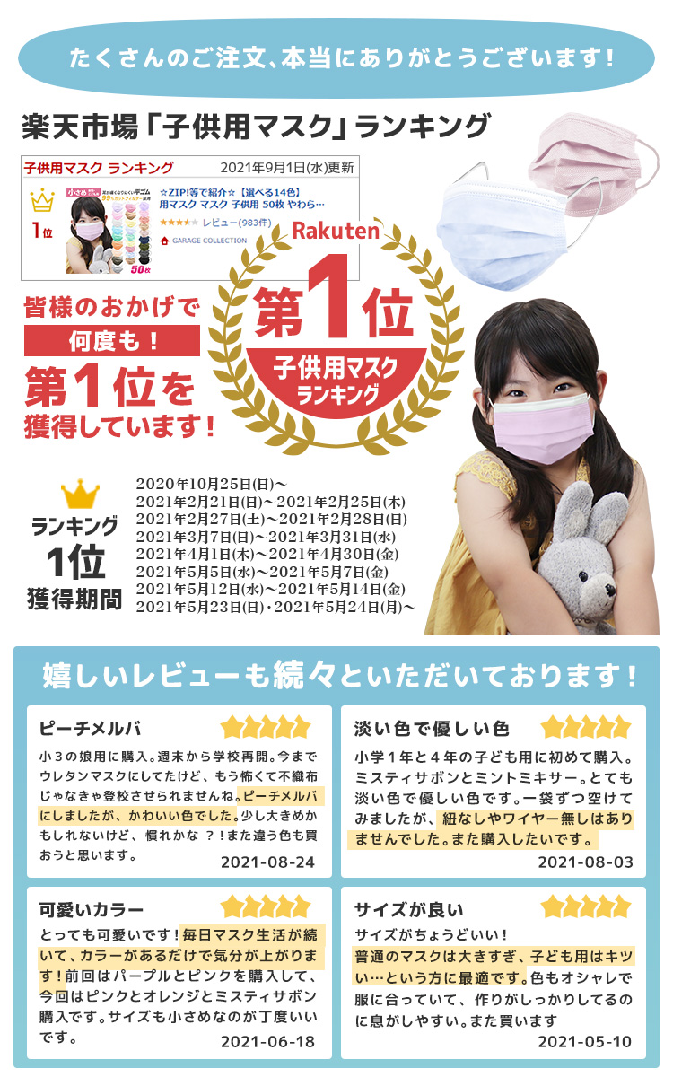 子供用不織布マスク◆ カラーも豊富で50枚入りです。 Shop>>>>