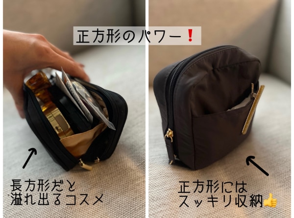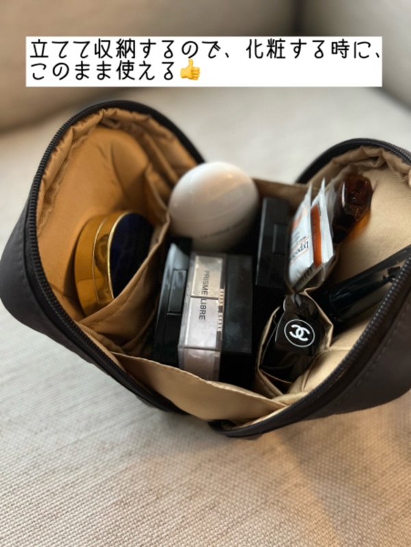 Twitterとインスタでバズった化粧ポーチ。 私も試してみましたー!!! ★☆凄いポイントは2つ。★☆ ①自立するので、メイクするときに使いやすい。 ポケットや仕切りを活用し、ブラシやリップなどスティック状のアイテムを縦向きに収納することができます。 そのため、 化粧するときに、ポーチをがばっとあけて、その中から必要なものを取り出やすくて、メイクしやすいんですびっくりマーク あれどこ?これどこ?ってポーチの中から取り出さないで、そのままでOK! ②大容量 コンパクトに見えるのに、正方形の収納力が半端ない 洗濯機で丸洗いが可能なため、汚れた場合のお手入れも簡単!! コスメ以外にも、ガジェットポーチ、オムツポーチとして使う方もいらっしゃるそうです。