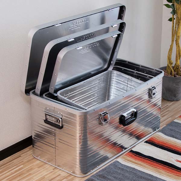 【楽天1位】コンテナボックス アルミ製 Lサイズ 88L 収納ボックス フタ付き 収納ケース アルミ 88リットル 78 x 40 x 38cm おしゃれ 収納 道具入れ ストッカー 収納BOX 屋内 屋外 アウトドア テーブル スタッキング キャンプ用品 FIELDOOR 1年保証 ★[送料無料]