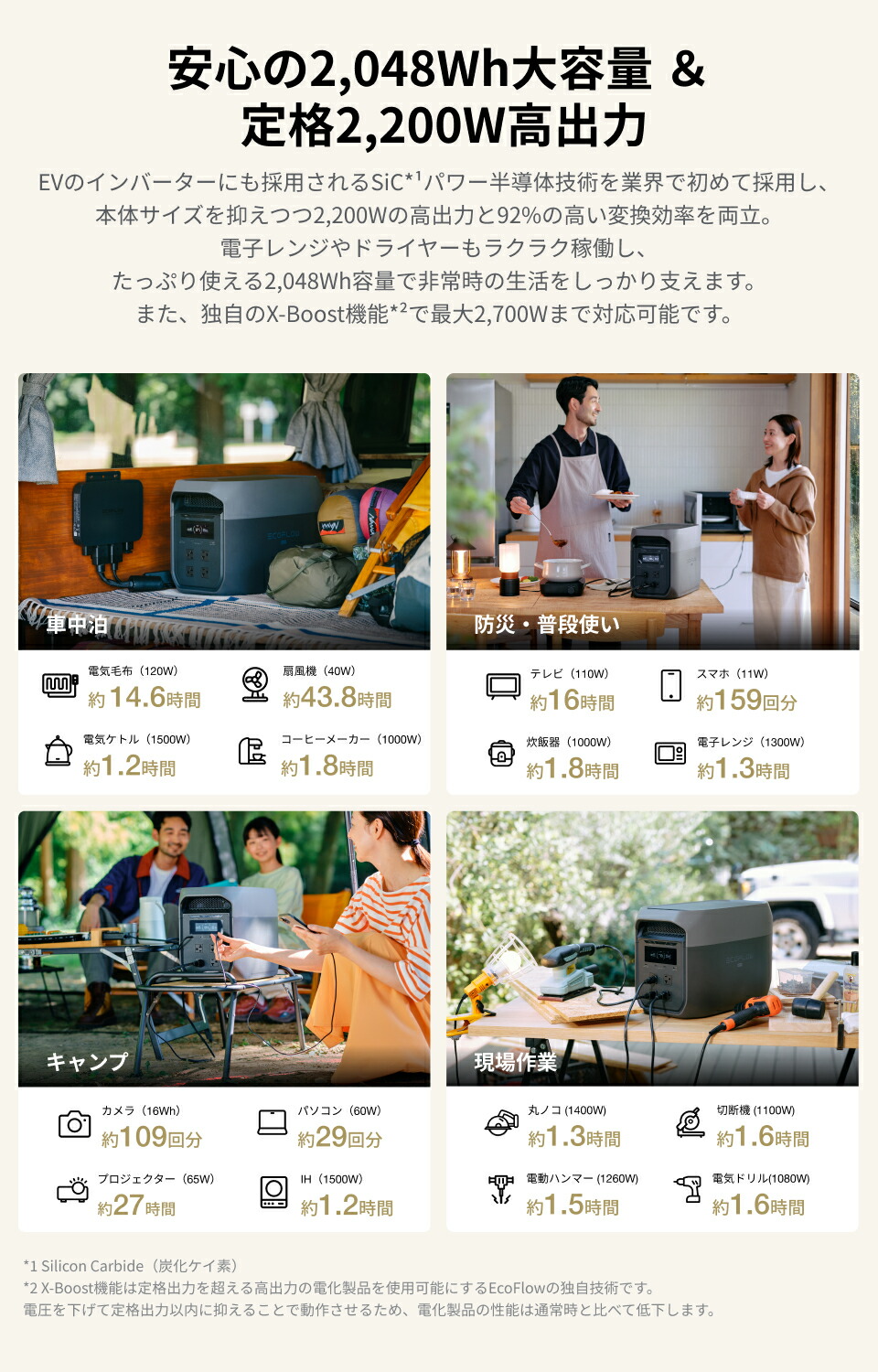 【クーポン利用で125,676円 12/14~】EcoFlow ポータブル電源 ソーラーパネル セット DELTA 3 Max 2048Wh+220W 長寿命 大容量 5年保証 蓄電池 発電機 バッテリー 太陽光発電 キャンプ 停電 エコフロー
