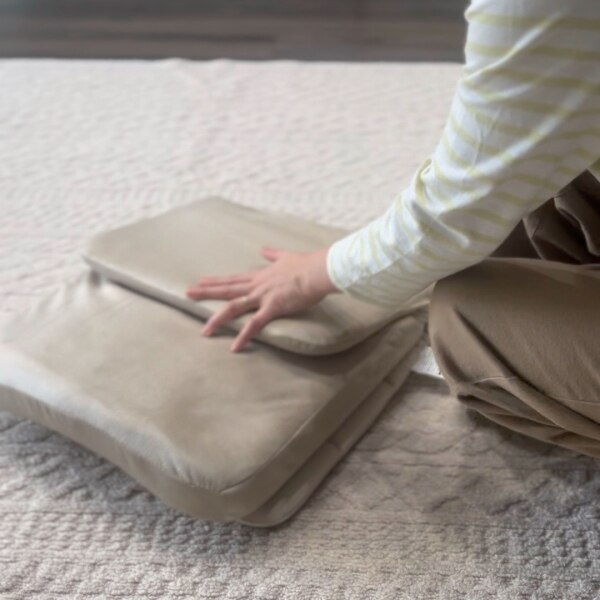 どこでも使えるコンパクト座椅子🪑🤍 座面が薄いからベッドの上でもコタツでも どこでも使える!🛏️ コンパクトなので持ち運びも収納も便利🙌 座り心地も申し分なし😳🫰 うちは母親がよく泊まりにくるから来客用に購入したよ☺️ 使わない時はスリムに収納できるから 場所を取らないのが嬉しい❤️🔥❤️🔥 柔らかなくすみカラーでベロア調の生地感も高級感がある🫣✨ 母の日のプレゼントにもオススメだよ🎁