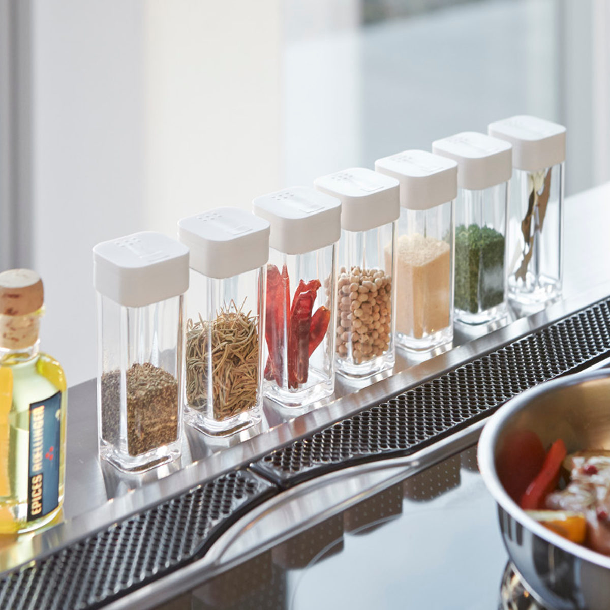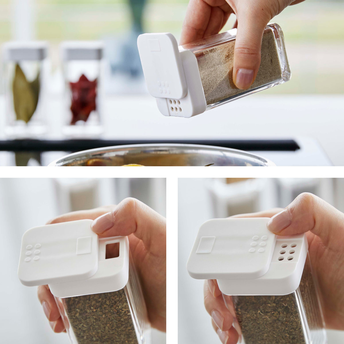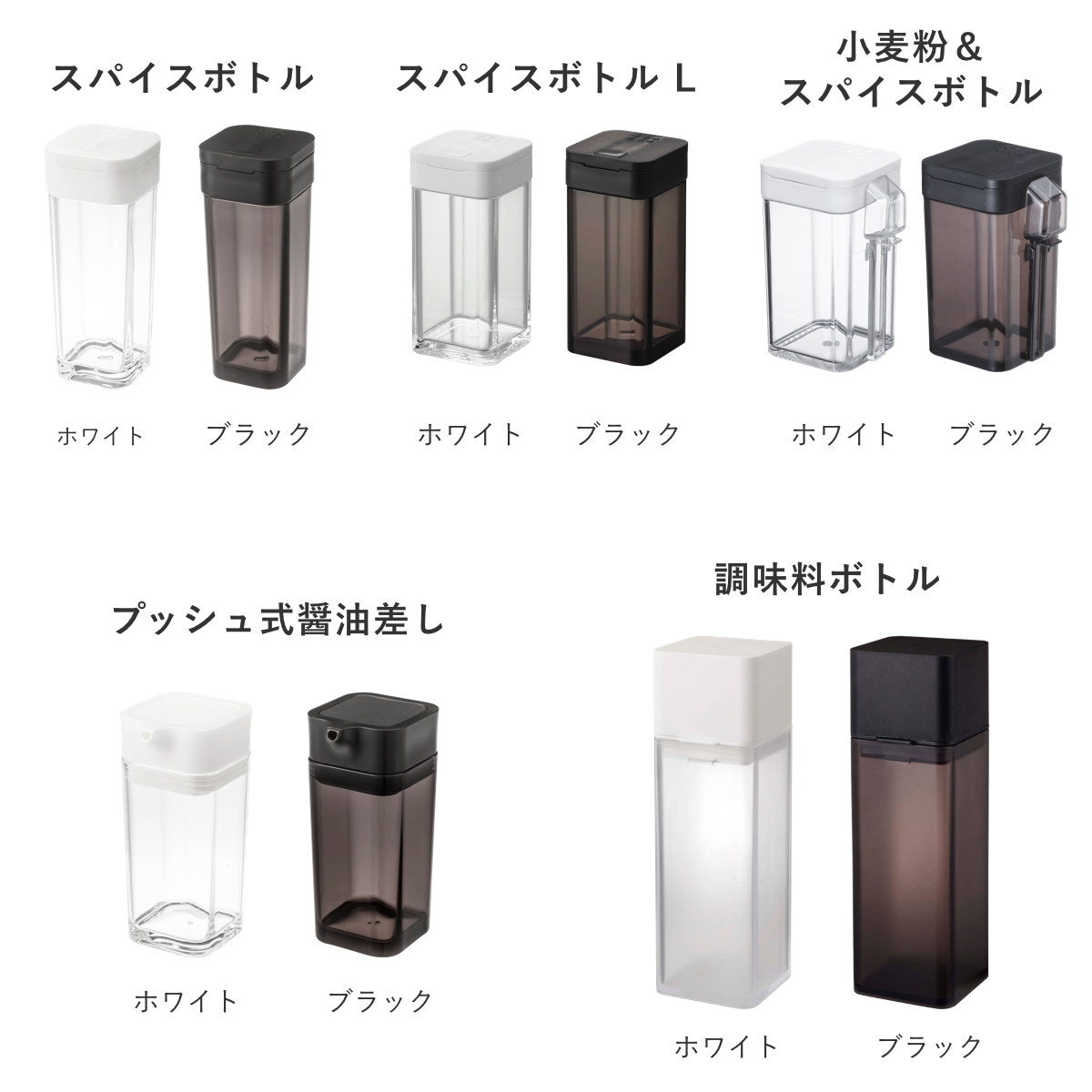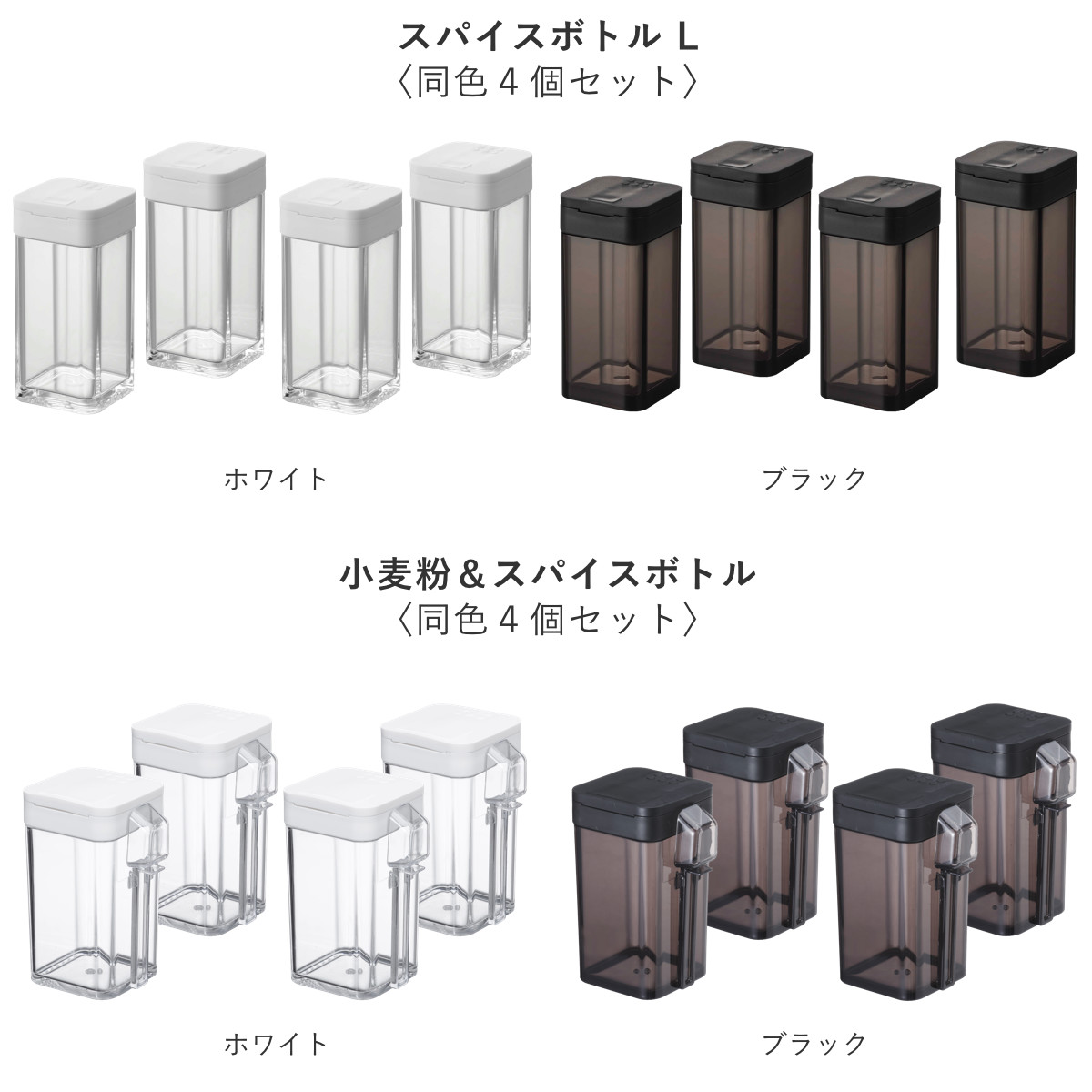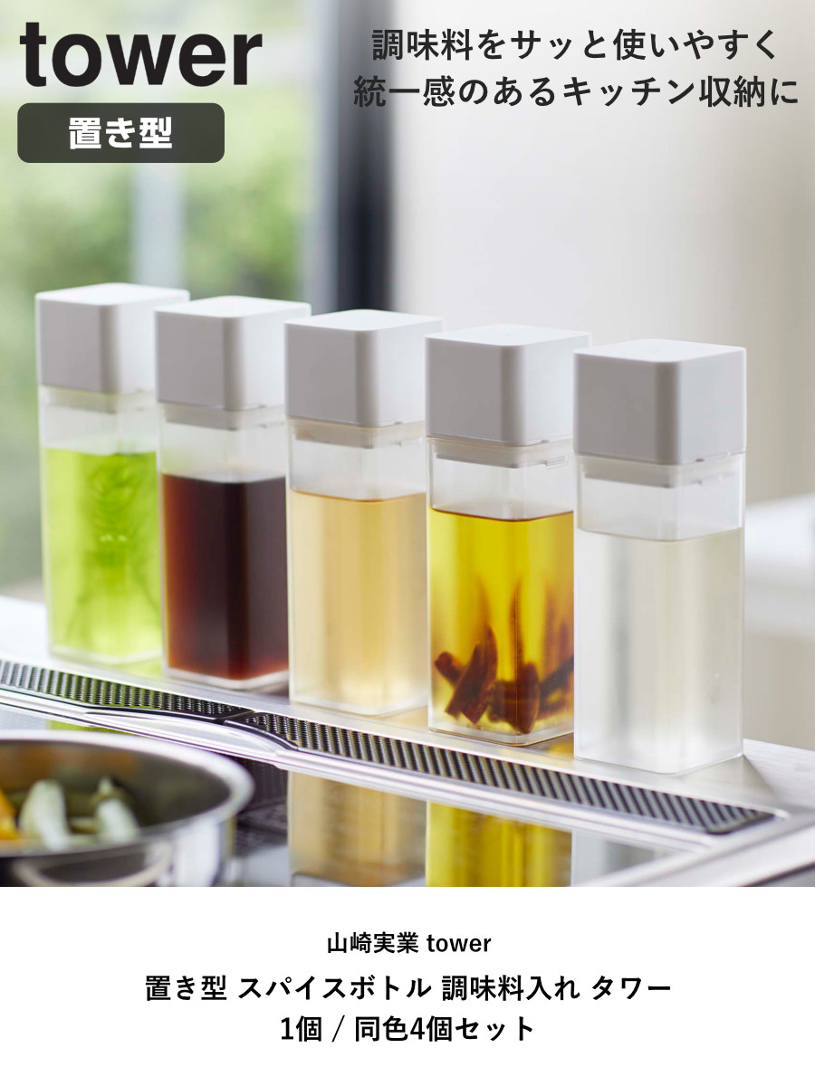 山崎実業 tower 置き型 スパイスボトル 調味料入れ タワー 1個 同色4個セット ( 4903208028639 小麦粉&スパイスボトル プッシュ式醤油差し 調味料ボトル 詰め替え用調味料ボトル 浮かせる収納 浮かせて収納 詰め替えボトル )