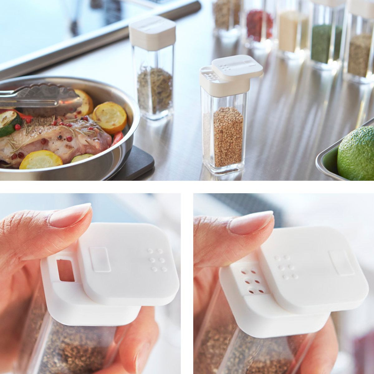 《tower スパイスボトル》 ・ほんだし ・だし塩 ・炒りごま を収納しています✨ 小さじの計量スプーンが付いていて計量しやすく、 振りかけることもできるから大活躍◎