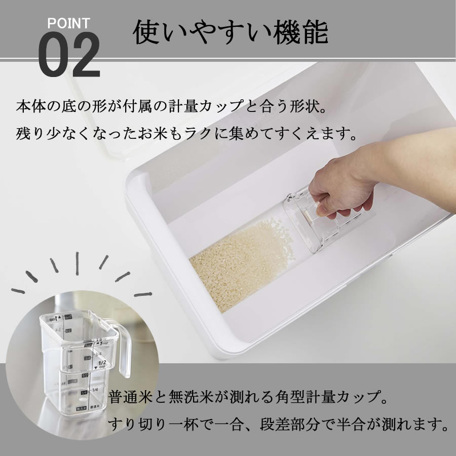 米びつ シンク下 ライスストッカー 密閉 TOWER キッチンカウンター 引出し 米櫃 シンプル 保存容器 キッチン収納 スリム 密閉容器 ペットフード yamazaki キッチン 便利グッズ 山崎実業 タワー 【K-Style】 密閉米びつ タワー 10kg 計量カップ付 184
