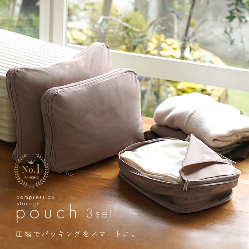 #圧縮ポーチ \お得なS・M・L 3点セット/旅行って楽しいけど、時間と体力が勝負…たくさん遊ぶために便利グッズ使う!