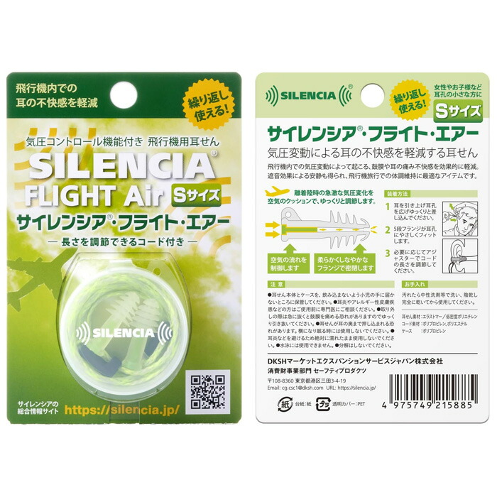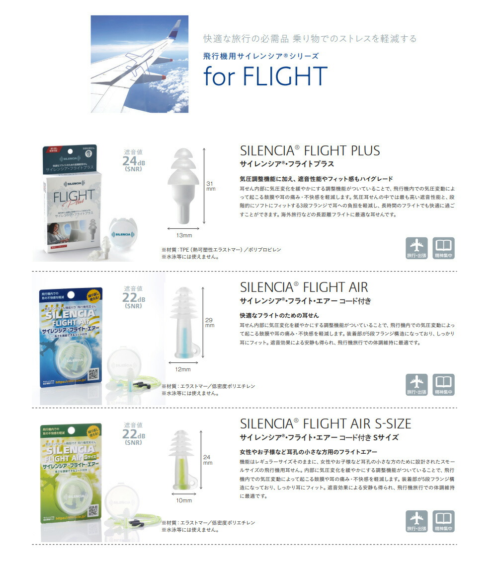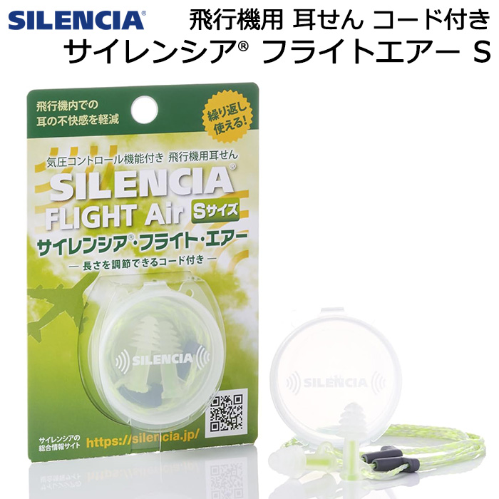 飛行機用 耳栓 サイレンシア フライト エアー コード付き Sサイズ 子供用 女性用