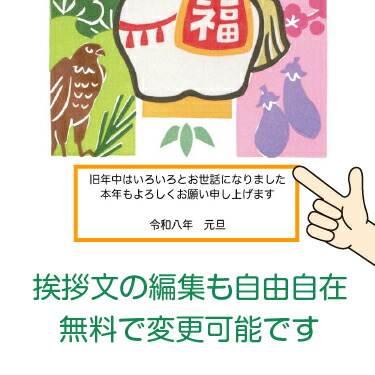 °✧🄿5倍♪2営業日で納品📪送料無料🚚はがき代込み♪お年玉付き年賀状に5枚から印刷してくれます。スマホ・PCどちらでも編集可能です。