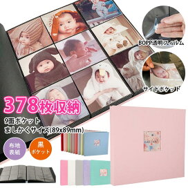【花柄×ハート窓】アルバム ましかく 9面 大容量 可愛い いろは出版 シンプル ましかくアルバム フォトアルバム 写真 89x89mm ポケット 見開き 写真整理 1年1冊 子供 赤ちゃん 保育園 幼稚園 黒台紙 窓 付き 大きい 薄い 薄型 保管 ケース l-galk
