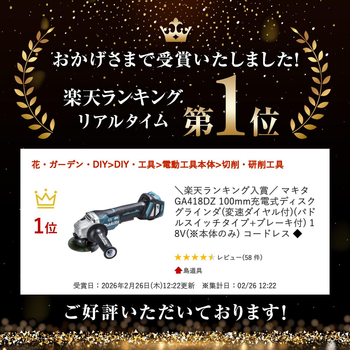 楽天 最安値 価格 マキタ GA418DZ 100mm充電式ディスクグラインダ(変速ダイヤル付)(パドルスイッチタイプ+ブレーキ付) 18V(※本体のみ) コードレス ◆