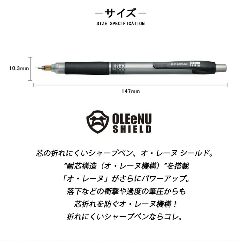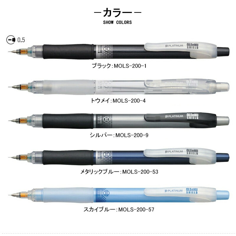 【11/1〜30ポイント5倍要エントリー】プラチナ PLATINUM ペンシル オ・レーヌ OLEENU SHIELD 0.5mm ブラック/MOLS-200-1 トウメイ/MOLS-200-4 シルバー/MOLS-200-9 メタリックブルー/MOLS-200-53 スカイブルー/MOLS-200-57 速記用 学生新入学 学校 文房具 筆記用具