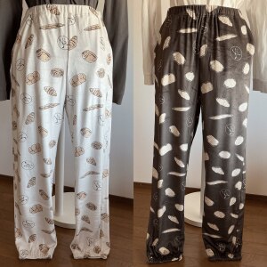 ベルメゾン✖️MAISON KAYSERのコラボ❗️パン柄がかわいい♡フリースパンツ🍞🥖🥐ベロア調のフリース素材で履き心地抜群♪ブラウンカラーは商品ページで見た画像より、色が濃い印象でした😅