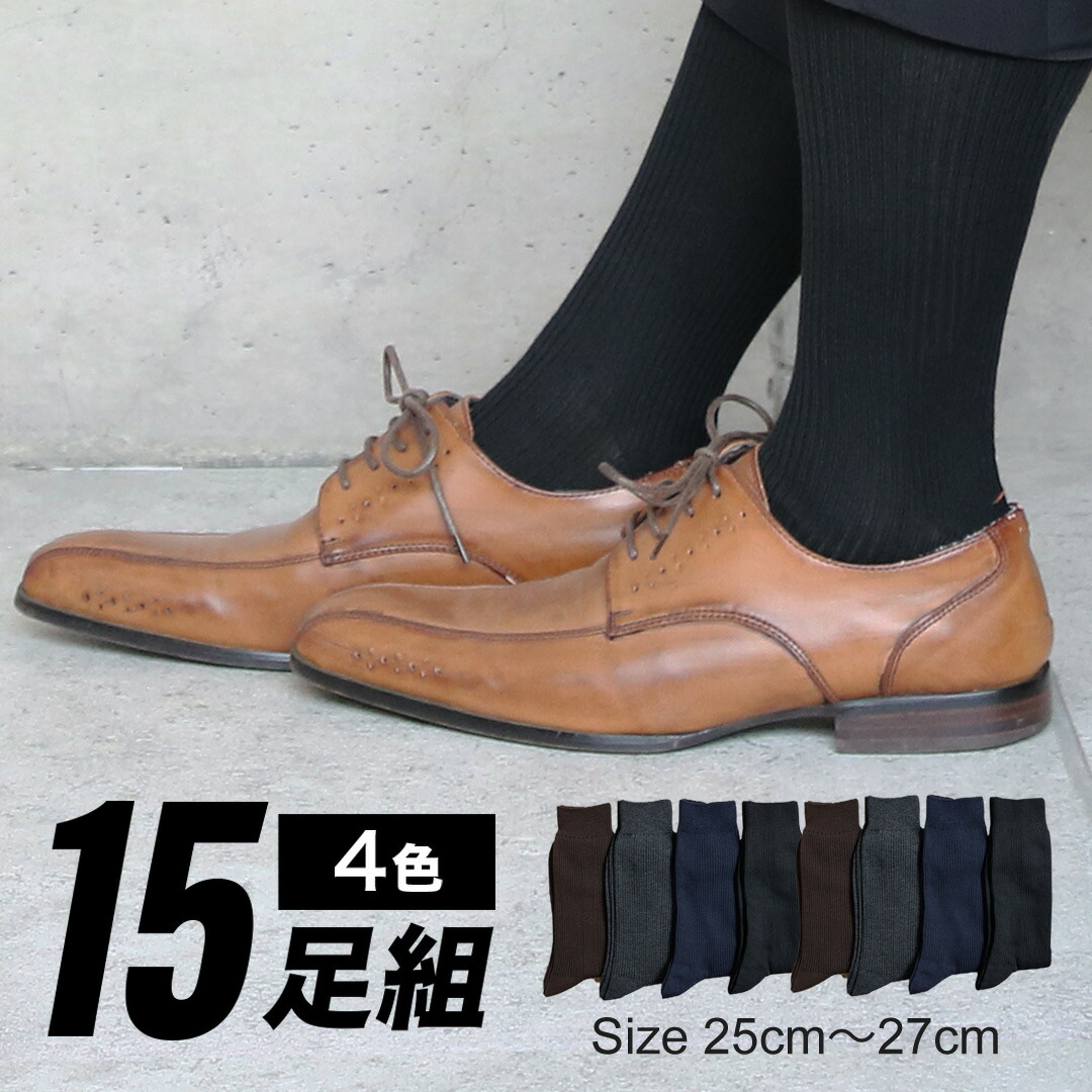 靴下 メンズ ソックス 15足セット リブ編み ベーシックカラー 25-27cm対応 送料無料