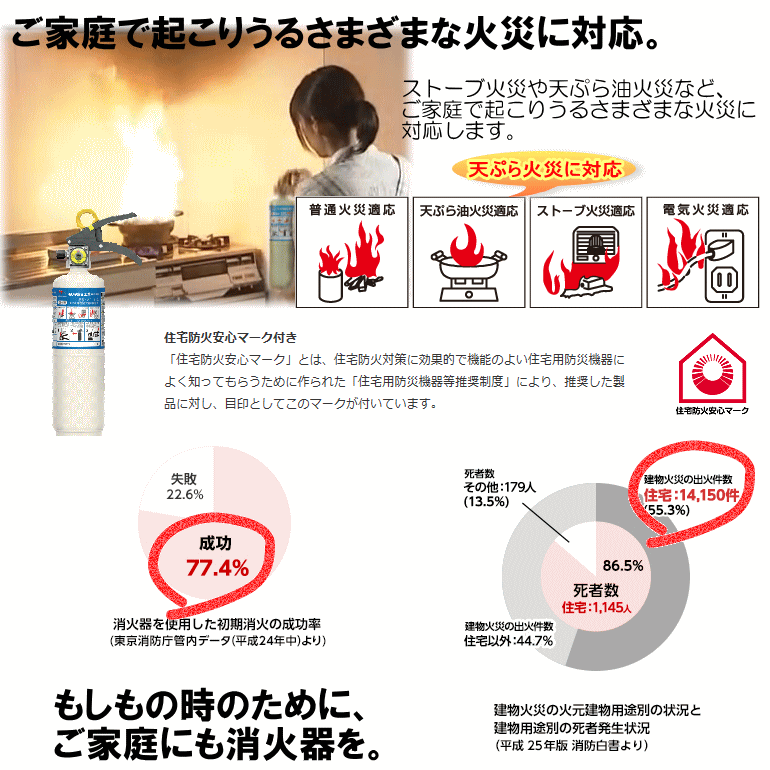 普通の粉末式消火器は使用後に掃除が大変で使用を躊躇してしまうが、これは雑巾でサッと拭くだけなので、いざという時に躊躇することなく使うことが出来ます。