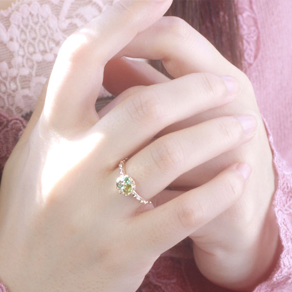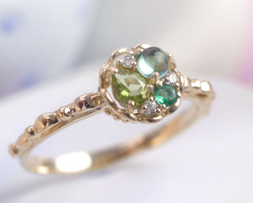 タルトシリーズ ペリドット 指輪 K10イエローゴールド 10k YG レディース グリーンクォーツ エメラルド ダイヤ リング 8月誕生石 5月誕生石 天然石 マルチストーン「幸せの青林檎のタルト」/製造オーダー品 約20日間納期