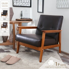 アンティーク風 一人掛けソファ ソファ 一人掛け アンティーク おしゃれ ソファー バイキャスト レザー アンティーク調 1人掛け 木肘 コンパクト 一人暮らし 一人用 1P レトロ ミッドセンチュリー ダークブラウン