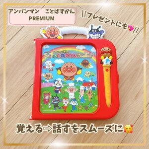 にも🎁 録音機能が付いてるから言葉を話すのも楽しくなる✨ 対象年齢3歳〜 言葉に興味を持ってきたら、このずかんオススメ🥺 アンパンマンだから子どもも夢中になる💪 言葉以外にもクイズモードや楽器で遊べるページもあるから 飽きずに楽しめるよ🥰 ⚠️ここは注意 ページがリングで繋がってるのでそこが破れたら元に戻らない😭 我が家では当時2歳の双子たちがリングから破ってしまい😭 対象年齢って大事だなと思いました😭笑