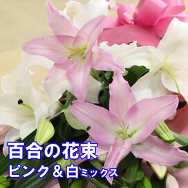 花束【あす楽12時まで受付】 誕生日 花 百合 ユリ フラワーギフト 結婚記念日 大輪 お供え お彼岸 御供 花 ゆり 供花 エーデルワイス ピンク 白 ユリの花束15輪以上