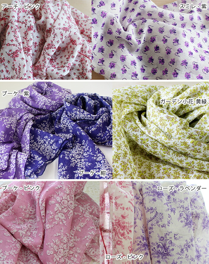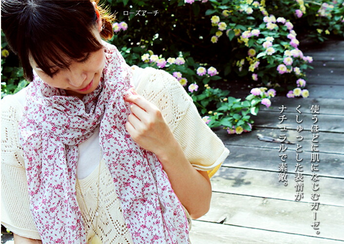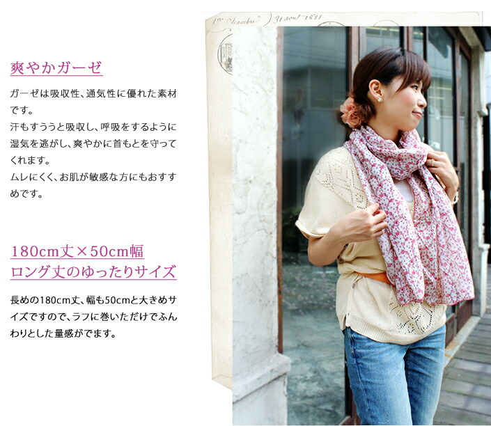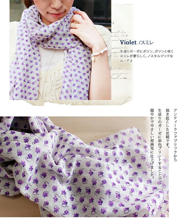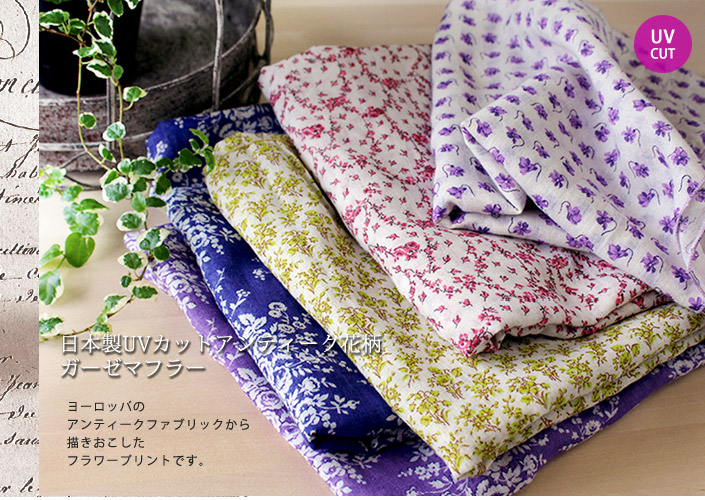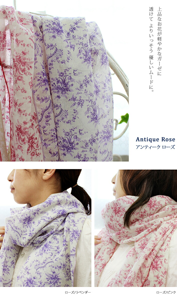 日本製 【 UVカット 】 ガーゼストール アンティーク 花柄 / 約53×180cm レディース ストール マフラー UV UV対策 紫外線対策 紫外線カット 日焼け防止 薄手 大判 ロング ガーゼ コットン 綿 春