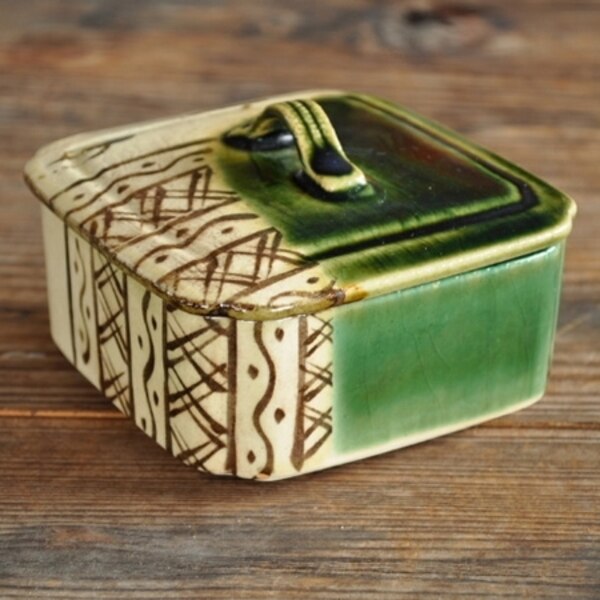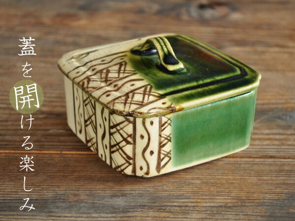食器 小鉢 おしゃれ 和食器 モダン 菓子鉢 瀬戸焼 赤津焼 織部焼 アウトレット カフェ風 織部錆絵角蓋物