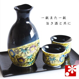 【敬老の日に@九谷焼 酒器セット】日本の伝統工芸九谷焼に美しい金箔がほどこされた、ぐい呑みと徳利のオシャレでモダンなセット。お酒が大好きなおじいちゃんに贈りたい!