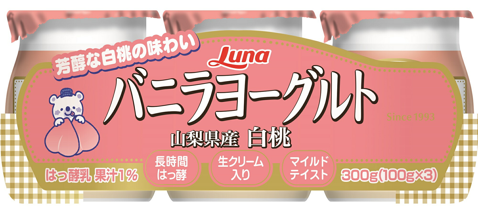 バニラヨーグルト 山梨県産 白桃 100g×3個×8パック 乳製品 デザート スイーツ 生クリーム入り 発酵 日本ルナ