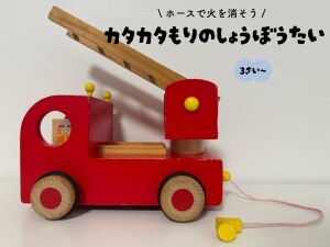 おもちゃ| はしごを斜めにして消防士をはしごの上に乗せると、カタカタと回転しながら降りていきます🚒 息子たちは消防車に付いてるホースでごっこ遊びをするのが大好きです👩🏻🚒