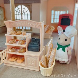 🥐パンが焼けるオーブンつきで子ども大喜び!美味しそうなミニチュアパンは大人も惹きつけられるリアルさです🤤 ◎オーブンにパン生地を入れてスイッチを回すと焼き上がったパンが出てくるしかけつき ◎ボタンを押すと引き出しが飛び出すレジスター ◎リアル&かわいいパンがたっぷり21個! ◎手持ちのお人形に着せられるエプロン・帽子つき ※「はじめてのシルバニアファミリー」のバルコニーに付属の看板をセットするとお家がパン屋さんに変身 ※「ピクニックワゴン」に看板をセットして棚を載せると移動パン屋さんに変身 おすすめ🫶🏻