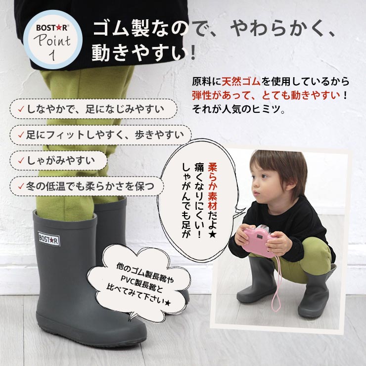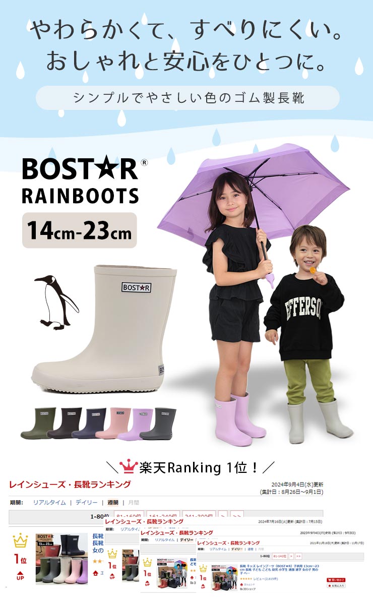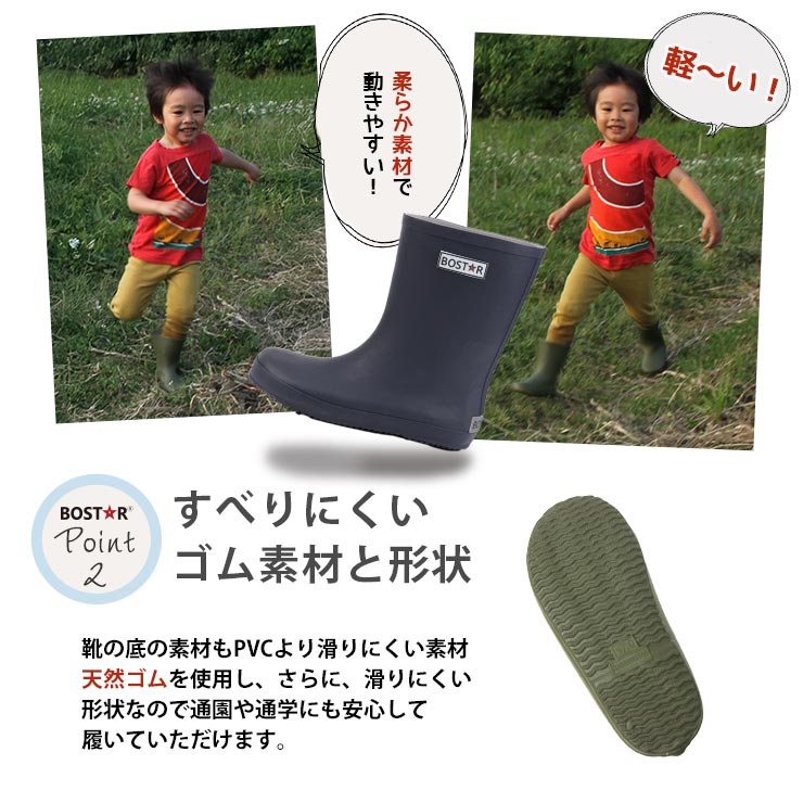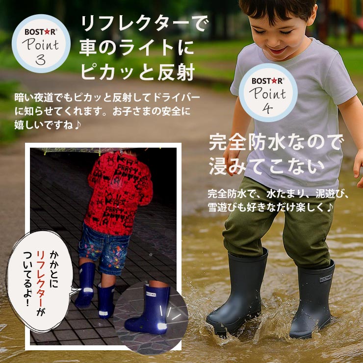 長靴 キッズ レインブーツ BOST★R 子供用 14〜23cm 長靴 子ども こども レインブーツ 幼児 小学生 通園 通学 女の子 男の子 ベビー シンプル 反射板 天然ゴム 安全 リフレクター 雪遊び 無地 雨具 雨靴 軽量 軽い 靴箱 おしゃれ 14cm15cm16cm17cm18cm19cm20cm21cm22cm23cm
