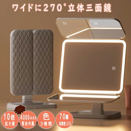 LEDブライトミラー 女優ミラー すぐ使える単三電池x4付き | (10倍拡大鏡付 LEDミラー ) LEDライトでまるで女優気分/ 明るい鏡 女優ミラー 化粧鏡 お姫様ミラー LEDミラー led拡大鏡 化粧ポーチ 折りたたみ メイクミラー 自撮り