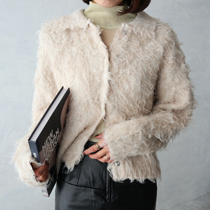 アウター コート シャギー ウール混 ノーカラー ハーフコート レディース おすすめ おしゃれ 2025秋冬新作