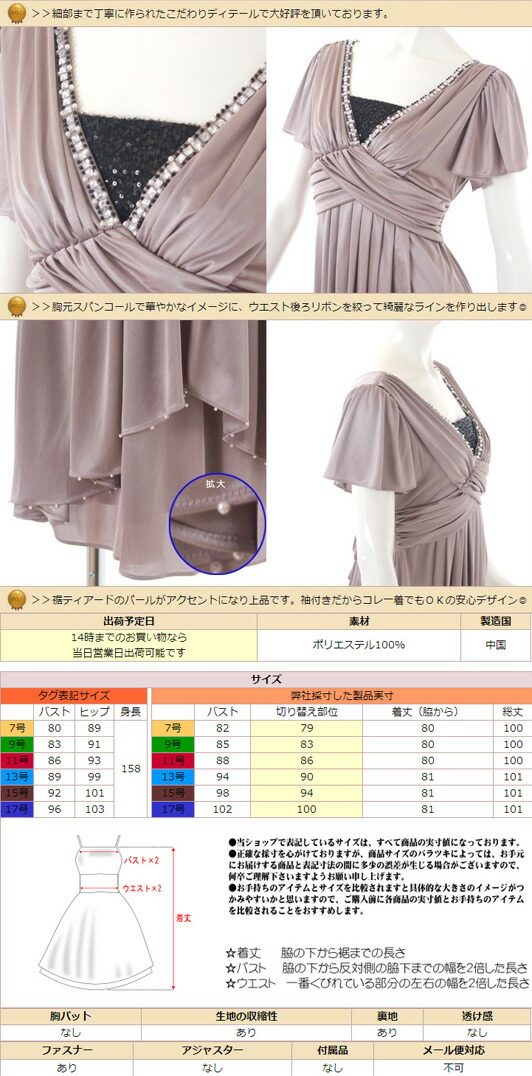 友人の結婚式に出席する為に購入しました。 胸元のビジューがキラキラ光るので、撮影した写真を見ても、地味になりすぎず良かったです。 スカートは膝丈で上品な印象です。