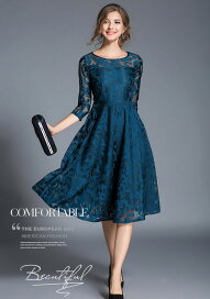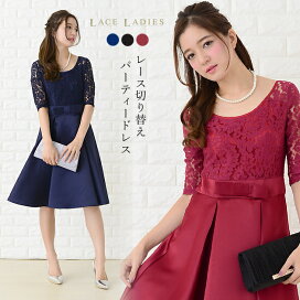 【アウトレット】パーティードレス 袖あり 結婚式 ワンピース 半袖 膝丈 大人 お呼ばれ パーティドレス
