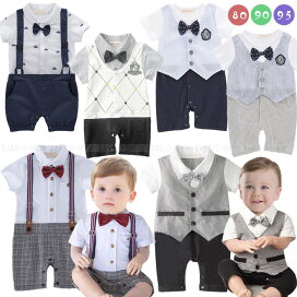 ゆうパケット送料無料 Pas de Zele ベビー服 男の子 子供服 フォーマル カバーオール 半袖 ベビー ロンパース 夏 スーツ ネクタイ サスペンダー プリント トロンプ おでかけ 入園式 結婚式 お盆 帰省 出産祝い ギフト 60 70 80 90cm [M便 1/1]