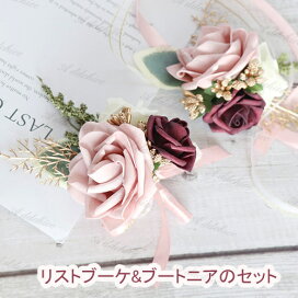【リストブーケ Sサイズ羽入り】【プリザーブドフラワー】ブライダル リストレット コサージュ型 プロム パーティー