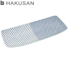 波佐見焼 白山陶器 重ね縞 長焼皿 / 25.5×11.5cm 和食器 角皿 シンプル ブルー ギフト セット プレゼント tomofac