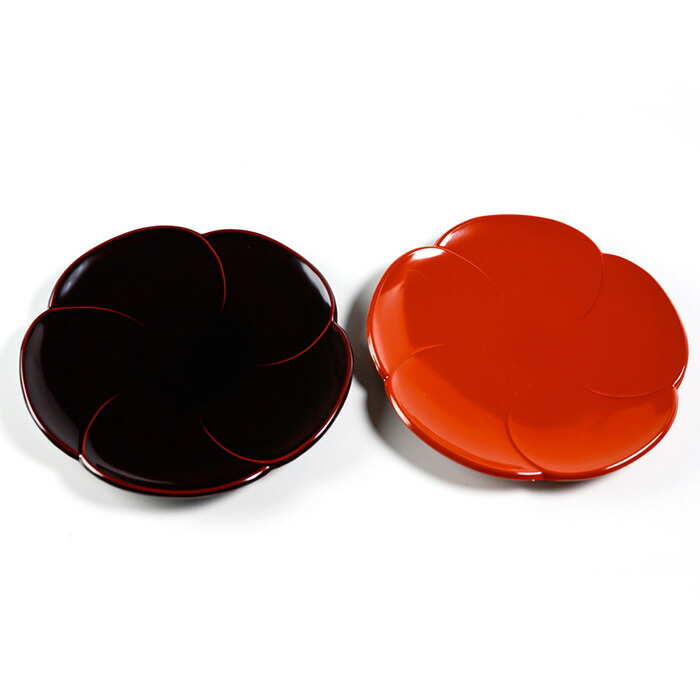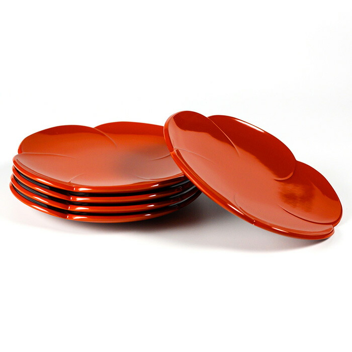 福梅銘々皿5.0 溜/朱 5枚セット 【まとめ買い割引】漆塗りの小皿 取り皿 和菓子のお皿 京都 和食器 漆器 FC29-1/2