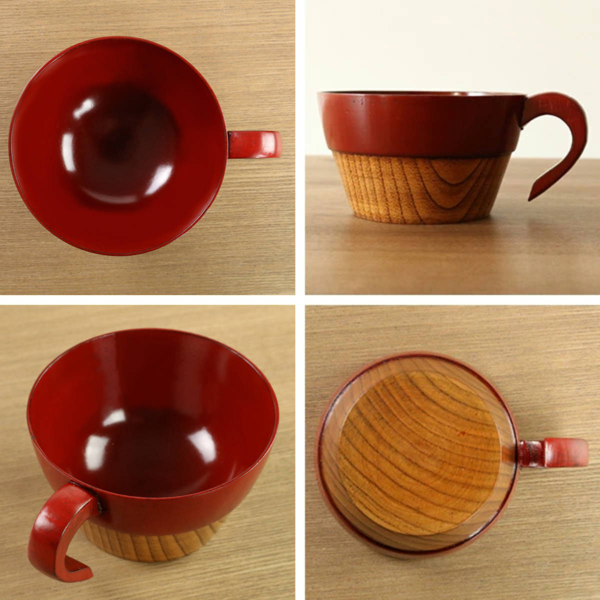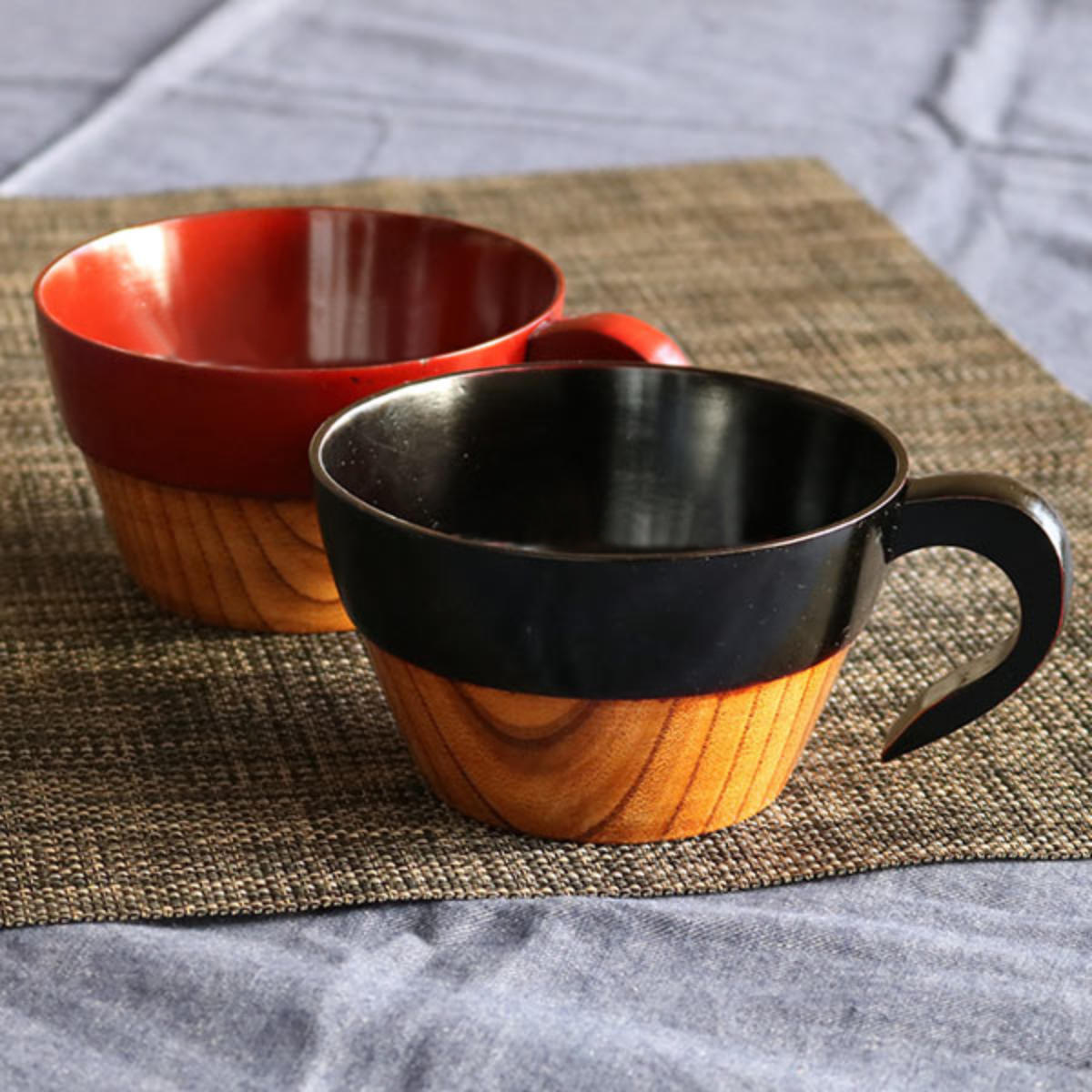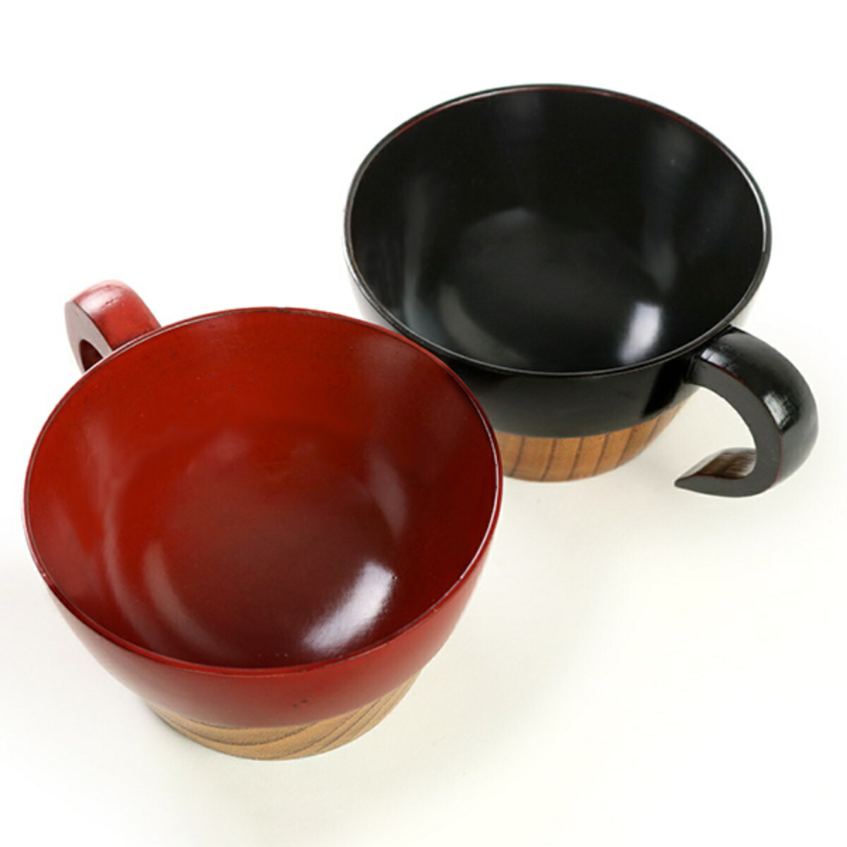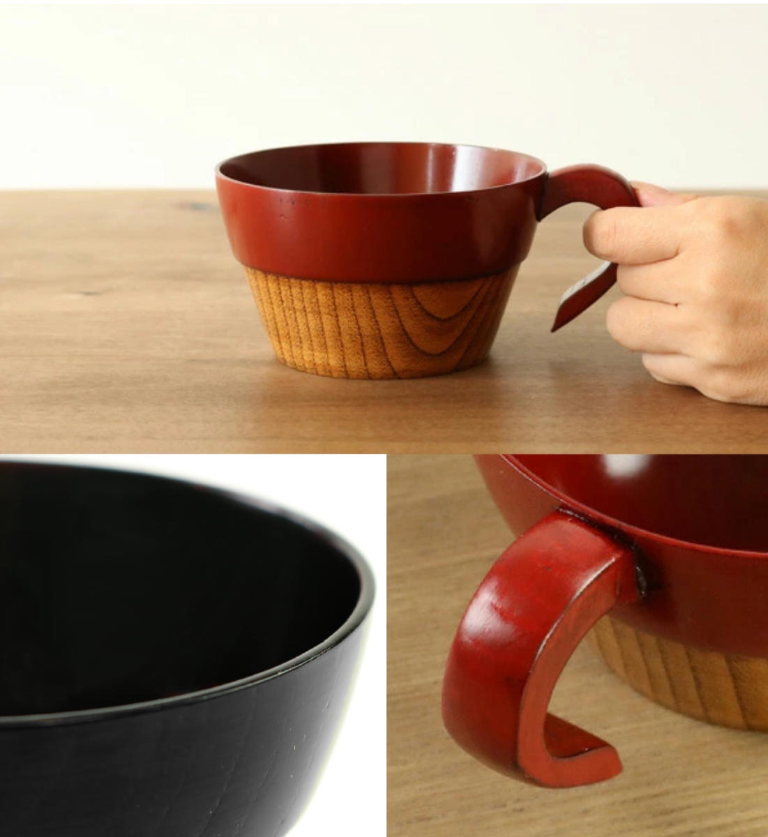 スープカップ 350ml 漆 ツートン 木製 ( 食器 天然木 スープマグ お椀 椀 スープボウル 木目調 汁椀 スタッキング スープ スープ椀 カップ ボウル マグ 味噌汁椀 吸物椀 根来 曙 塗り 器 漆塗り 木製食器 和風 和食器 )